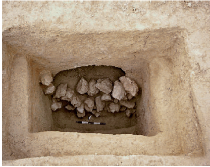 Εντοπίστηκαν 6 τάφοι αυτού του τύπου, διάσπαρτοι στο χώρο χωρίς συγκεκριμένο προσανατολισμό. Αποτελούνται από ορθογώνιο σκάμμα με διαμορφωμένο δάπεδο για να υποδεχτεί τον νεκρό με τα κτερίσματά του. Στη συνέχεια τοποθετούνταν οι πλάκες κάλυψης και το σκάμμα γέμιζε με τα προϊόντα της λάξευσης ως την επιφάνεια. Από τους παραπάνω τάφους προέρχονται πήλινα αγγεία και  χάλκινα αντικείμενα.