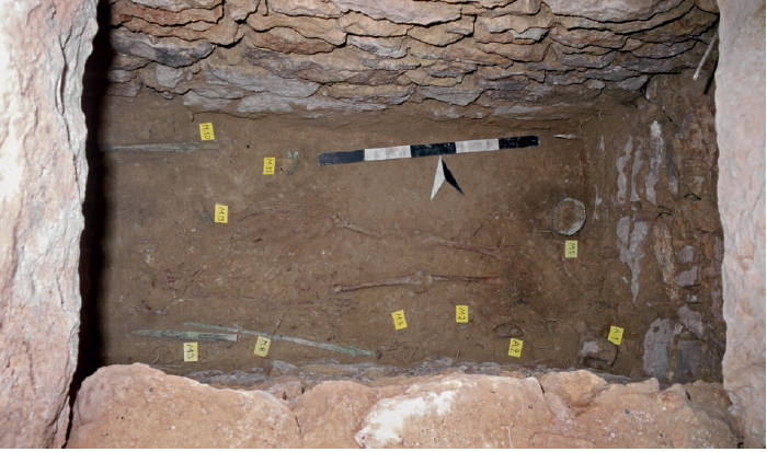 Σημαντική είναι η ανεύρεση 54 προϊστορικών τάφων που προκύπτει από το σύνολο των χάλκινων όπλων που συνόδευαν τους νεκρούς, αποτελούν, ως επί το πλείστον, ταφές, πολεμιστών. Οι τάφοι  ανήκουν σε τρεις μυκηναϊκούς αρχιτεκτονικούς τύπους.